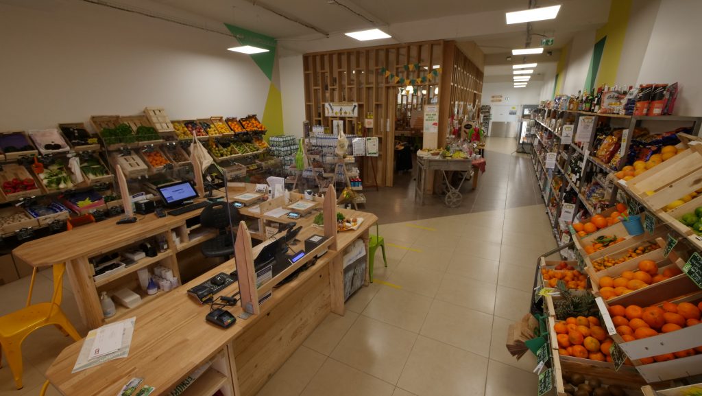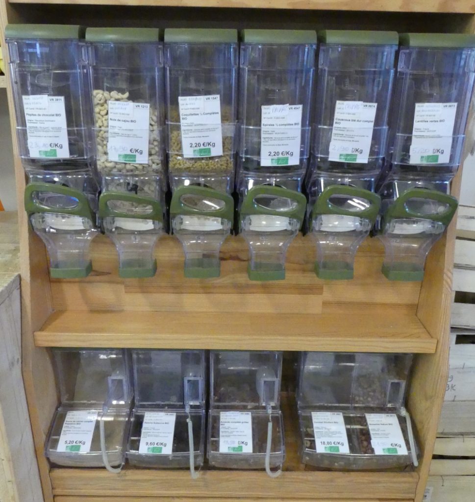 Vous trouverez un large choix de légumineuses, du riz, des pâtes, des conserves (certaines en bocaux consignés), du café, des épices et diverses huiles. Sans oublier les soupes, compotes et préparations diverses dont certaines viennent d’une entreprise de réinsertion partenaire. Et enfin, les gourmands trouveront un vaste choix de biscuits, miels, confitures et chocolats…